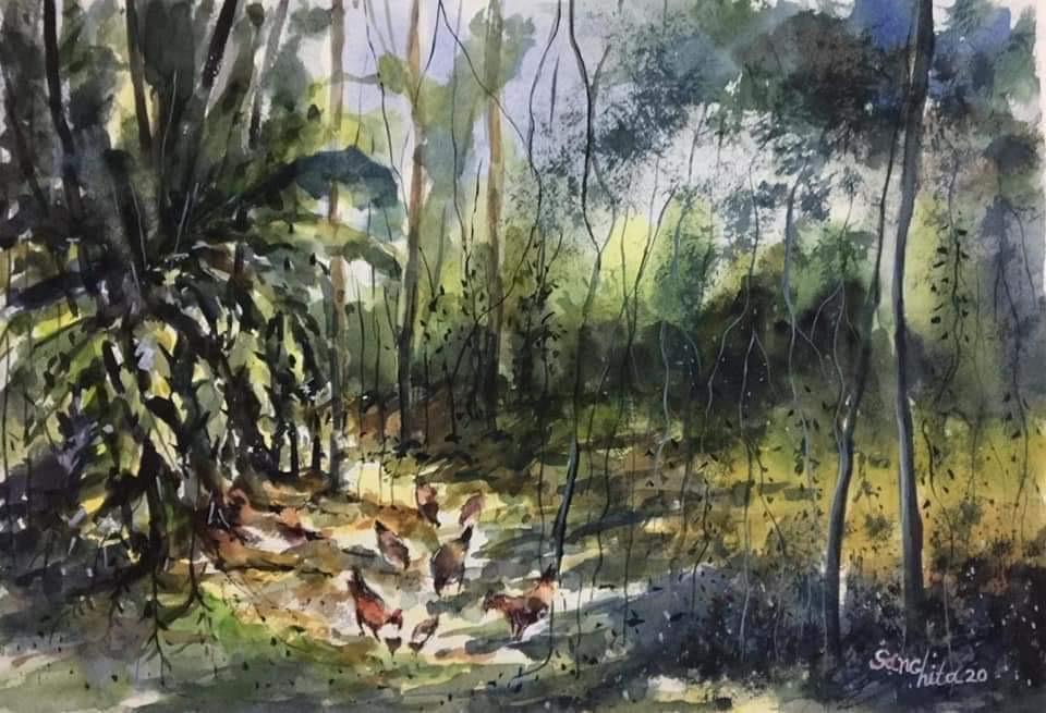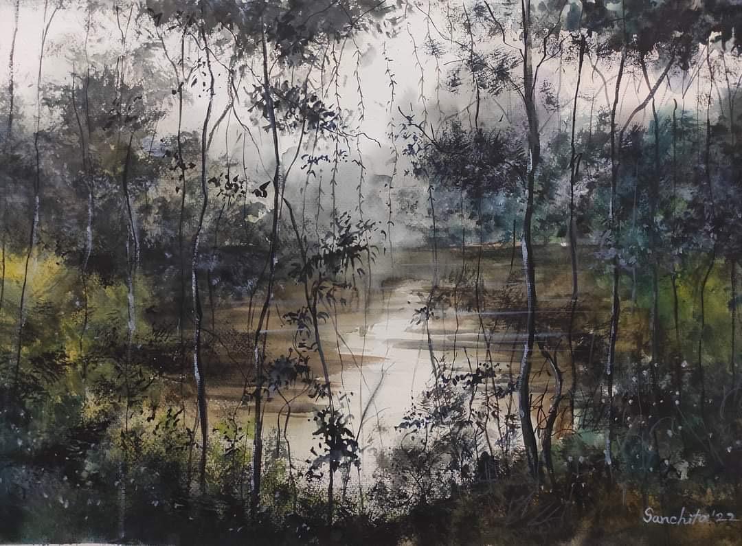 Sanchita Saha is an Artist who lives in Dhaka. She received her Bachelor’s and Master’s degrees in Economics, followed by a Bachelor’s degree in Fine Arts. Then, she continued her career as a painter and art educator.